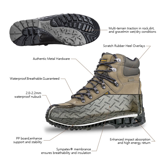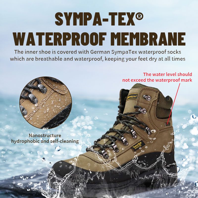 भीतरी जूता जर्मन सिम्पैटेक्स वॉटरप्रूफ मोजे से ढका हुआ है जो सांस लेने योग्य और वॉटरप्रूफ हैं, जो आपके पैरों को हर समय सूखा रखते हैं।