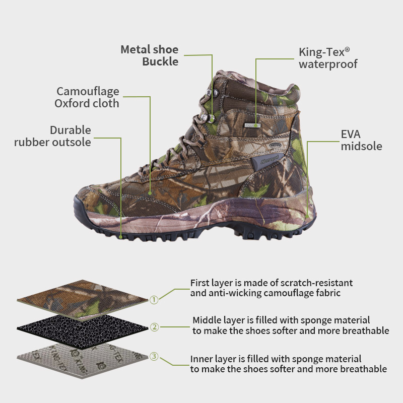 किंगटेक्स वॉटरप्रूफ मेम्ब्रेन हंटिंग बूट्स आपके पैरों को दलदल और कीचड़ में सूखा रखते हैं, जबकि स्टील्थ-फ्रेंडली डिज़ाइन आपको परिदृश्य में गायब होने में मदद करता है। कोई चिल्लाहट नहीं. कोई विकर्षण नहीं. बस आप और शिकार। अधिक जानकारी के लिए हमें पूछताछ भेजें।
