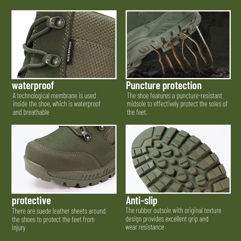 किसी न किसी इलाके से। छिपे हुए खतरे. अप्रत्याशित ज़मीन. पंचर-प्रूफ वॉटरप्रूफ कॉम्बैट बूट उन क्षणों के लिए बनाए गए हैं जब आप नीचे देखने और चिंता करने का जोखिम नहीं उठा सकते। एक पंचर-प्रतिरोधी मिडसोल के साथ इंजीनियर किया गया है जो कीलों, कांच और तेज मलबे को रोकता है, साथ ही पूर्ण जलरोधी सुरक्षा जो आपको गीली परिस्थितियों में चलने से रोकती है। अधिक जानकारी के लिए हमें पूछताछ भेजें।