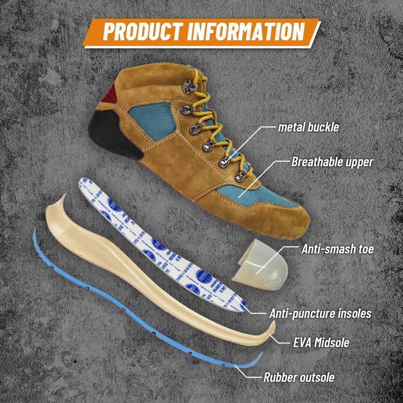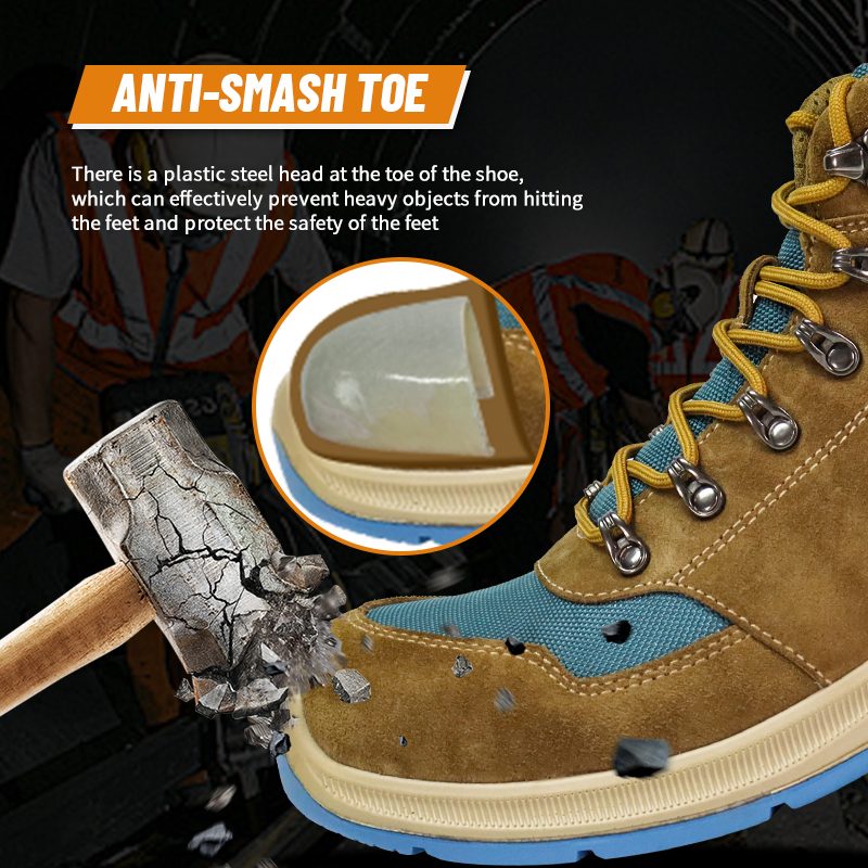 जूते के अंगूठे पर एक प्लास्टिक स्टील का सिर होता है, जो भारी वस्तुओं को पैरों से टकराने से प्रभावी ढंग से रोक सकता है और पैरों की सुरक्षा की रक्षा कर सकता है।