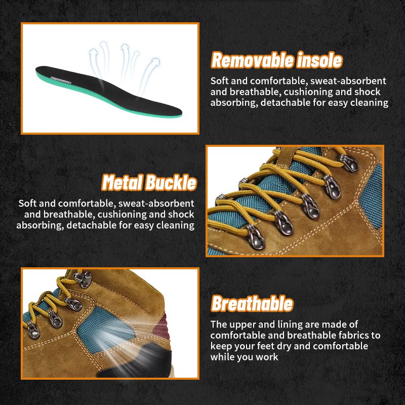 काम करते समय आपके पैरों को सूखा और आरामदायक रखने के लिए ऊपरी और अस्तर आरामदायक और सांस लेने योग्य कपड़ों से बने होते हैं।
