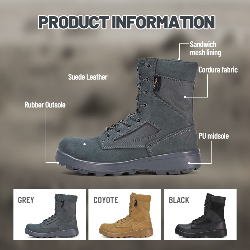 हवा अंदर नहीं जा सकती। रेत अंदर नहीं घुस सकती। फिसलना कोई विकल्प नहीं है. विंडप्रूफ सैंडप्रूफ एंटी-स्लिप डेजर्ट टैक्टिकल बूट विश्वसनीय सुरक्षा प्रदान करते हैं जहां रेगिस्तान हर चीज का परीक्षण करता है: सीलबंद निर्माण बारीक गंदगी को बाहर रखता है, और आक्रामक आउटसोल ढीली रेत और पथरीली जमीन को समान रूप से पकड़ता है। अधिक जानकारी के लिए हमें जांच भेजें।