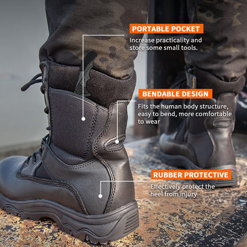 ये YKK जिपर फुल ग्रेन लेदर पुलिस बूट 800 जोड़े के MOQ के साथ रंग, सामग्री और विवरण में अनुकूलन के लिए उपलब्ध हैं, जो ब्रांड सहयोग और समूह खरीद के लिए आदर्श हैं। और इन शिकार जूतों के निम्नलिखित फायदे हैं:
